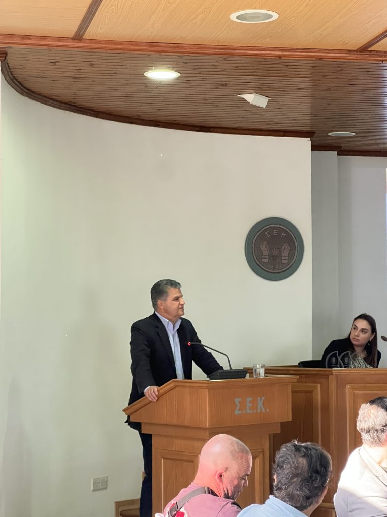 Ο Επαρχιακός Γραμματέας της ΣΕΚ Λεμεσού, Γιώργος Οδυσσέως, καλωσορίζοντας τους συνέδρους, επεσήμανε ότι οι εργαζόμενοι στην Τοπική Αυτοδιοίκηση αποτελούν τη «ζωντανή δύναμη» των Δήμων και των Κοινοτήτων, υπογραμμίζοντας τον καθοριστικό τους ρόλο στην εύρυθμη λειτουργία των υπηρεσιών και την εξυπηρέτηση των πολιτών.