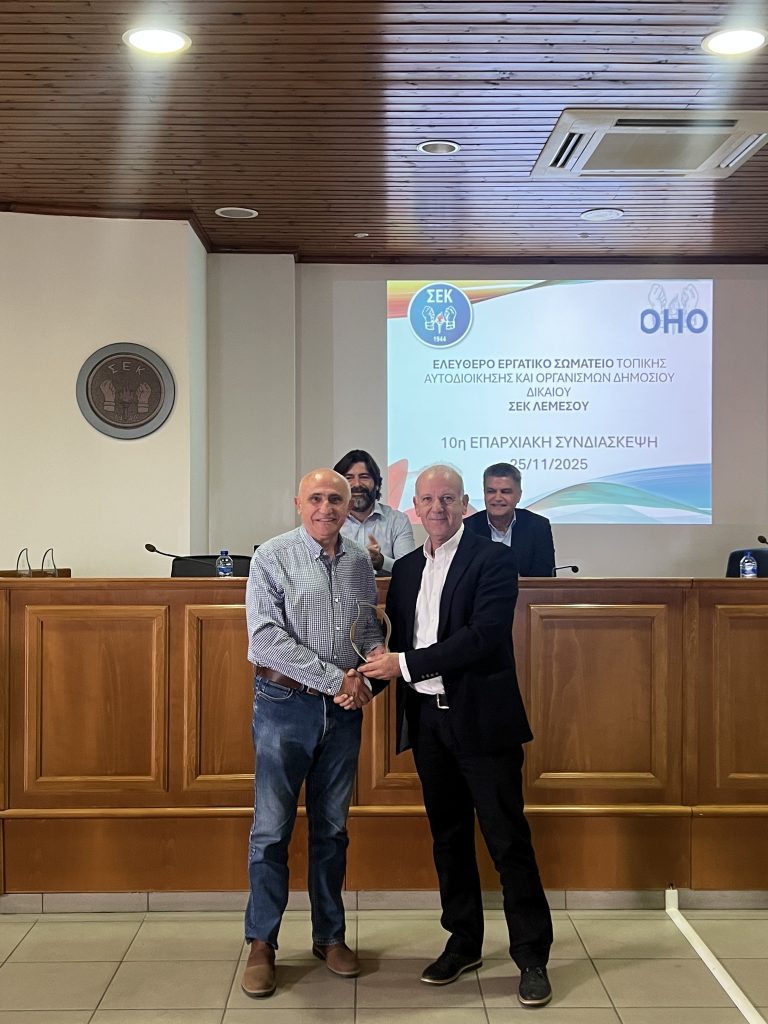 Με επιτυχία πραγματοποιήθηκε την Τρίτη 25 Νοεμβρίου 2025 η 10η Επαρχιακή Συνδιάσκεψη του Σωματείου Τοπικής Αυτοδιοίκησης & Οργανισμών Δημοσίου Δικαίου της ΣΕΚ Λεμεσού, με τη συμμετοχή εργαζομένων από Ημικρατικούς Οργανισμούς, Δήμους, Κοινότητες και Επαρχιακούς Οργανισμούς Αυτοδιοίκησης.