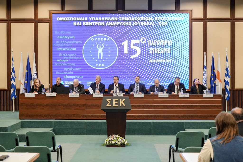 Με μεγάλη επιτυχία πραγματοποιήθηκε την Παρασκευή 28 Νοεμβρίου 2025, στο οίκημα της ΣΕΚ στον Στρόβολο, το 15ο Παγκύπριο Συνέδριο της ΟΥΞΕΚΑ – ΣΕΚ. Το Συνέδριο συγκέντρωσε εκπροσώπους από όλη την Κύπρο και σηματοδότησε τη νέα πορεία της Ομοσπονδίας στον Ξενοδοχειακό Κλάδο.