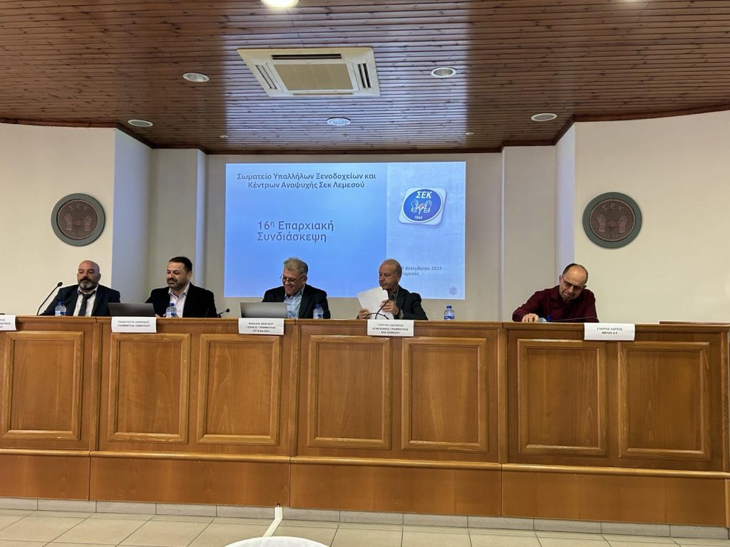 Με ιδιαίτερη ζωντάνια και ουσιαστικό διάλογο πραγματοποιήθηκαν την Τρίτη 9 Δεκεμβρίου 2025 οι εργασίες της 16ης Επαρχιακής Συνδιάσκεψης του Σωματείου Υπαλλήλων Ξενοδοχείων και Κέντρων Αναψυχής ΣΕΚ Λεμεσού, που έλαβαν χώρα στην αίθουσα «Χριστοδούλου Μιχαηλίδη» του οικήματος της ΣΕΚ Λεμεσού.